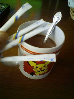 部屋の掃除してたら、スティックシュガーを見つけたんで、
