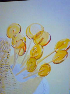 一応食べ物をリアルに描くって課題なんですけど、あたしシンプルでぺっこうあめ9本しか描いてないから、メイン終了です。