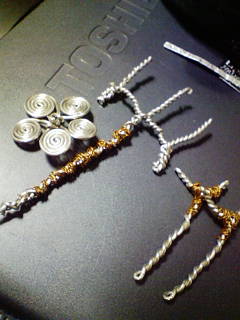 ハリガネが接着剤ではくっつかないらしく、糸でグルグル巻きにして、そこに接着剤を。