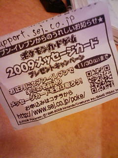 7・11のポケモンメッセージカード。